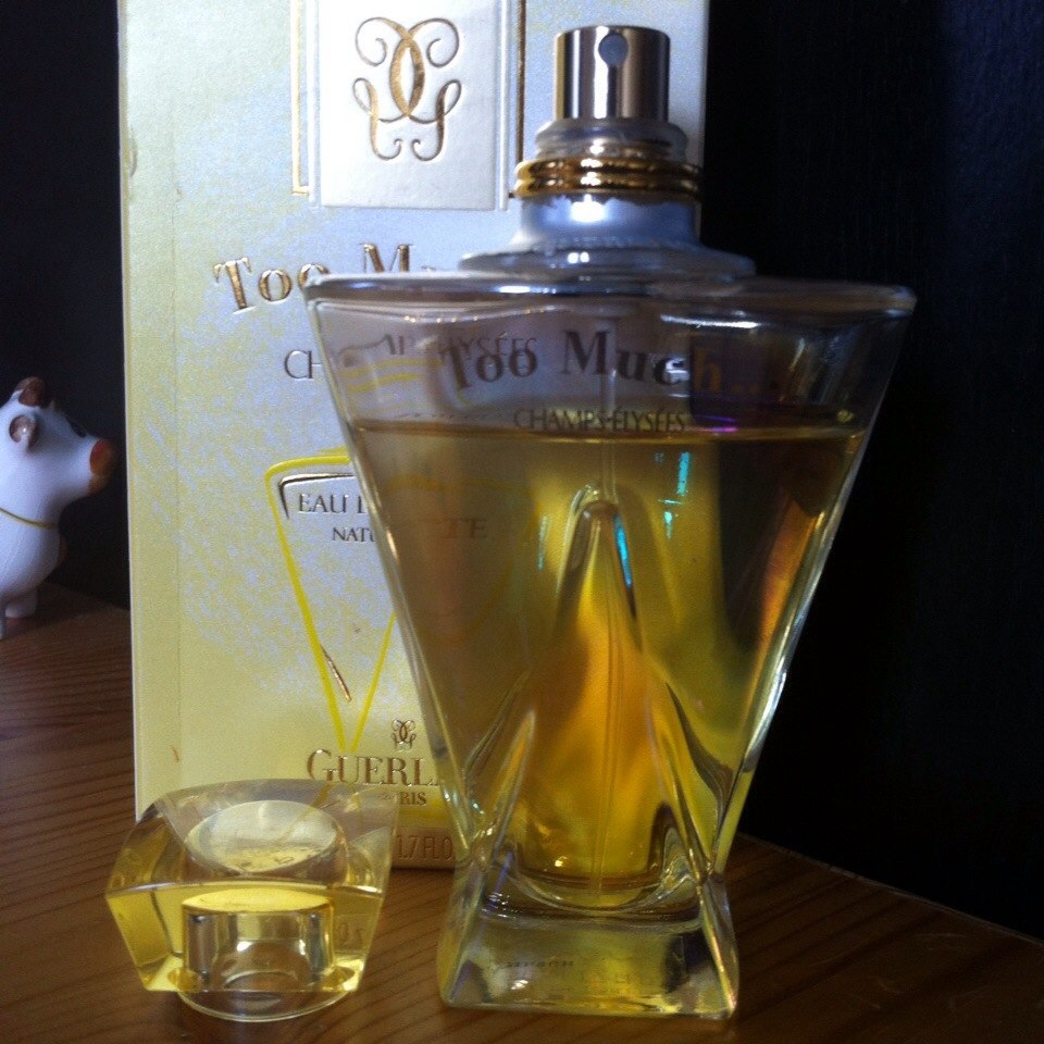 Жан-Поль Герлен дает новое толкование оригинальному аромату Champs Elysees. Получилась более насыщенная и яркая, скорее, вариация, чем версия своего знаменитого предшественника. Создавая Too Much, великий парфюмер смог передать энергию, свободолюбие и легкомысленность юной девушки. Аромат воплотил в себе прозрачность весеннего воздуха, едва распустившихся листьев, яркость солнечных дней, глубокое цветочное звучаниие во главе с сияющей мимозой. Флакон повторяет ту же форму, как и у Champs Elysees, но отличается переливающимся блеском стекла.