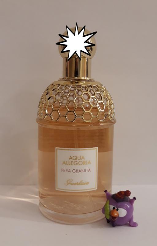 «В Pera Granita Тьерри Вассер превращает в пленительный и жизнерадостный аромат лучше всех утоляющий жажду летний десерт — граниту. Пикантная свежесть солнечного калабрийского бергамота, подчеркнутая нотами грейпфрута и лимона, воспроизводит искристость ароматных льдинок. Они смешиваются с пронизывающей зеленой и сочной кислинкой груши, которая постепенно обволакивает своей тающей мякотью. В сердце аромата удивительные ноты османтуса с нюансами абрикоса привносят в композицию бархатистые грани. Штрих кедра дополняет устилающий сад пружинистый ковер из мха и белых мускусов, который влечет понежиться в грезах под сенью фруктовых деревьев» — пресс-релиз Guerlain.
