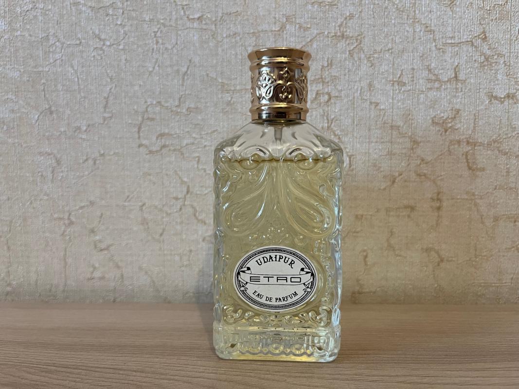 Купить Etro Udaipur можно в формате парфюмированной воды объемом 100 мл. Стоимость релиза составляет 160 евро. Флакон представлен в виде стеклянного пузырька с резными этническими узорами. Стоппер декорирован «под золото».