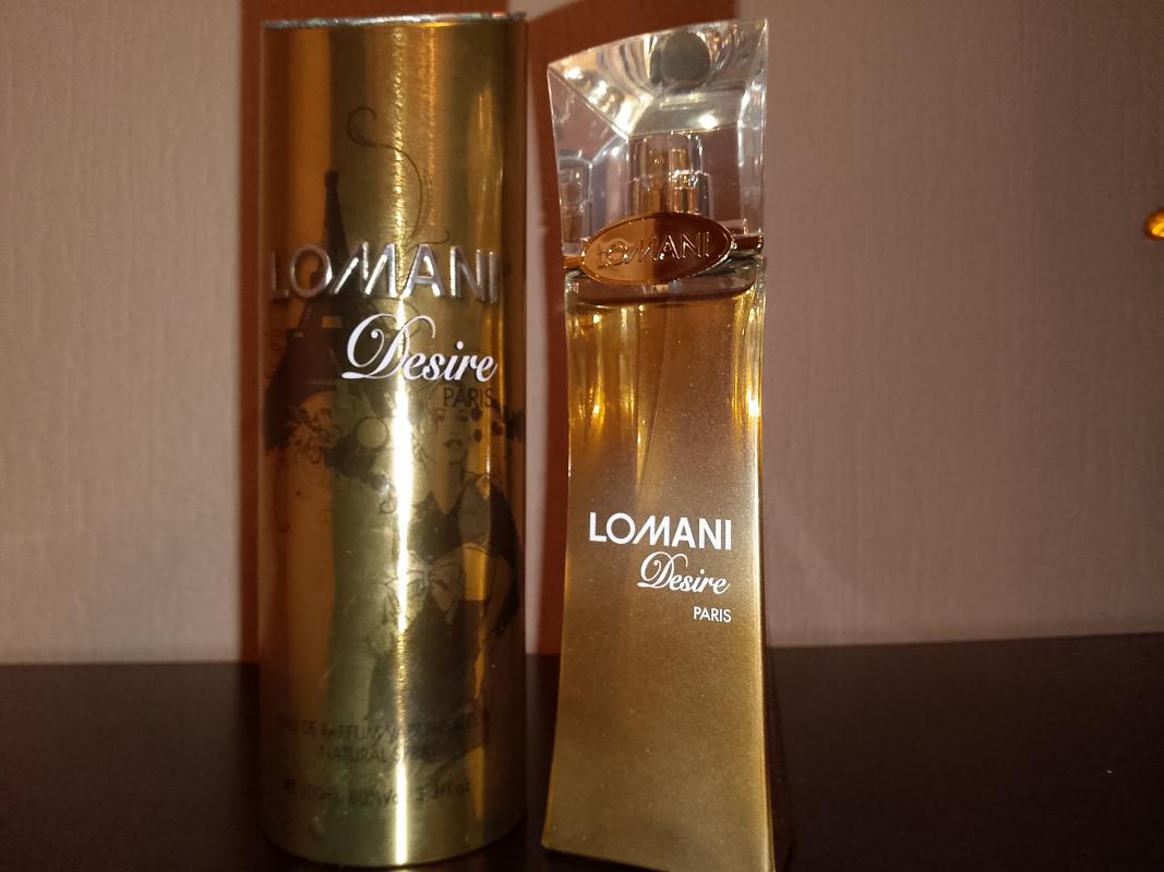 Desire Lomani - это новый аромат для женщин от Lomani, принадлежит к группе ароматов цветочные фруктовые восточные, выпущен в 2014 году. Начальные взрывные ноты: сочный лайм, спелый апельсин, а также цветы апельсина и яблоко. Мелодия сердца: египетский жасмин, мускус, яркие акценты сладкой малины и королевской розы. Аккорд базовой основы воплощает таинственное сплетение пачули и амбры, ювелирно дополненное нежностью ванили и сладостью меда. Аромат олицетворяет образ молодой женщины: в её глазах горит задорный огонёк, а на губах блуждает заманчивая улыбка. Тонизирующий, лёгкий и утончённо элегантный запах. Он предназначен для тех молодых женщин, кто предпочитает летние, мягкие ароматные союзы, украшающие их дневной деловой образ чувственной элегантностью.