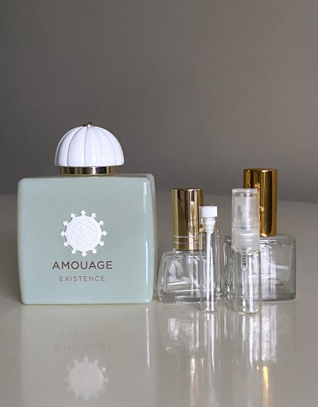 По своей белоцветочно-альдегидной структуре с оттенками пряностей, дерева и ладан Existence несколько напоминает N°22 от Chanel, но общее впечатление, создаваемое ароматом, совсем другое. Сияющий альдегидно-цветочный остов Existence также вызывает ассоциации с Dia, что связывает это новое издание с наследием Amouage. В любом случае, Квентин Биш создал многогранную композицию с "чистым", сияющим характером, не жертвуя при этом тёплым, обволакивающим звучанием. Как всегда у творений этого парфюмера, шлейф и стойкость выше всяких похвал.