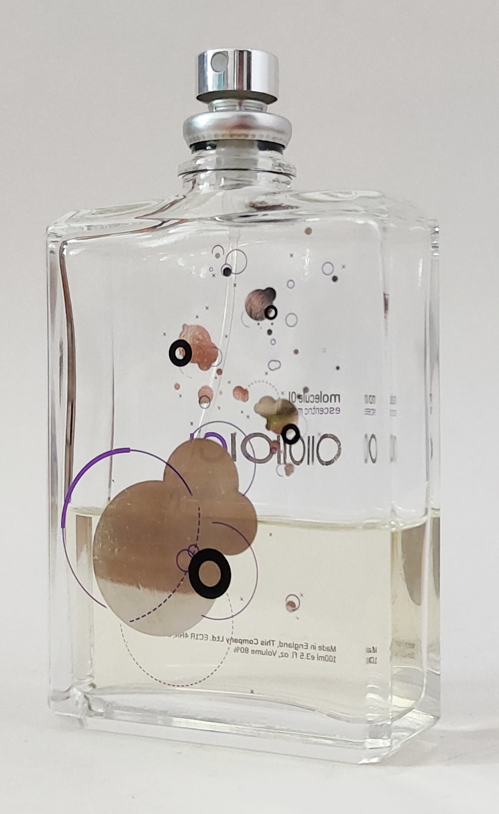 Духи Молекула состоят только из Iso E Super, заставляя эту ноту сердца трепетать и волноваться. «Тот, кто пользуется этим ароматом, заметит воздействие, которое аромат производит на окружающих людей, так как Molecule01 придает ему неподдающееся описанию сияние, великолепие и излучение. Это почти эффект феромона.» Приятный, тонкий бархатно - древесный аромат, который исчезает, потом опять появляется через какое-то время.
