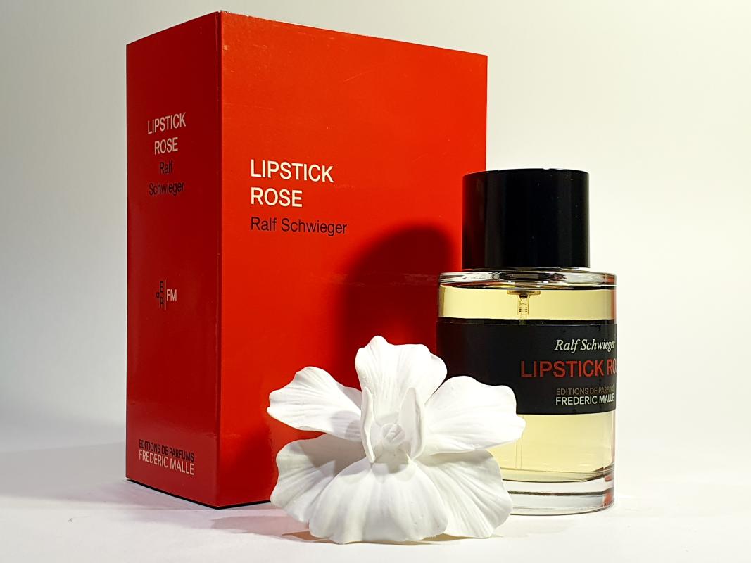 Парфюмер Ralf Schwieger в 2000 году представил публике удивительный женский аромат Frederic Malle Lipstick Rose, который стал воплощением женственности и кокетства. Примечательно, что, как и стильная губная помада, парфюм отличается приятным ароматом, который остается с женщиной на целый день. Парфюмерная композиция переливается множеством ярких оттенков, сладких фруктов, великолепных цветов. Словно аромат теплого лета, фруктов и душистая легкость листвы после дождя начинается трогательное звучание Frederic Malle Lipstick Rose. В нем ощущаются звонкие мелодии грейпфрута и непередаваемые аккорды фруктовой сладости. Сплетение цветов в сердечном аккорде дополняется душистой свежестью розы, сдобренной каплями утренней росы. Пеларгония из Мадагаскара, потрясающая деликатность фиалки лишь подчеркивают эту картину. Сентиментальные и впечатлительные девушки не смогут устоять против силы и очарования букета. Изысканная и даже аристократичная роза получает более легкомысленное звучание, рождается пикантный коктейль с ванильно-мускусной базой.