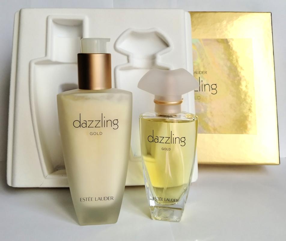 Праздник жизни. Классика. Dazzling Gold - один из великолепного дуэта ароматов, выпущенных Estee Lauder в 1998. Аромат, драгоценный и теплый как жидкое золото, только что вышедшее из печи алхимика. Богатая фруктово-цветочная смесь составлена из интенсивных белых цветов и гладкого сандалового дерева. Как пламенный золотой закат, Dazzling Gold является теплым и сияющим, он раскрывается на Вашей коже как экзотический цветок, нагретый солнцем. Верхние ноты яблока и красного дерева переходят в грандиозное цветочное "сердце" из ландыша, фрезии, розы и жасмина. Теплый древесный шлейф и легкая ваниль напоминают атмосферу медленного танца