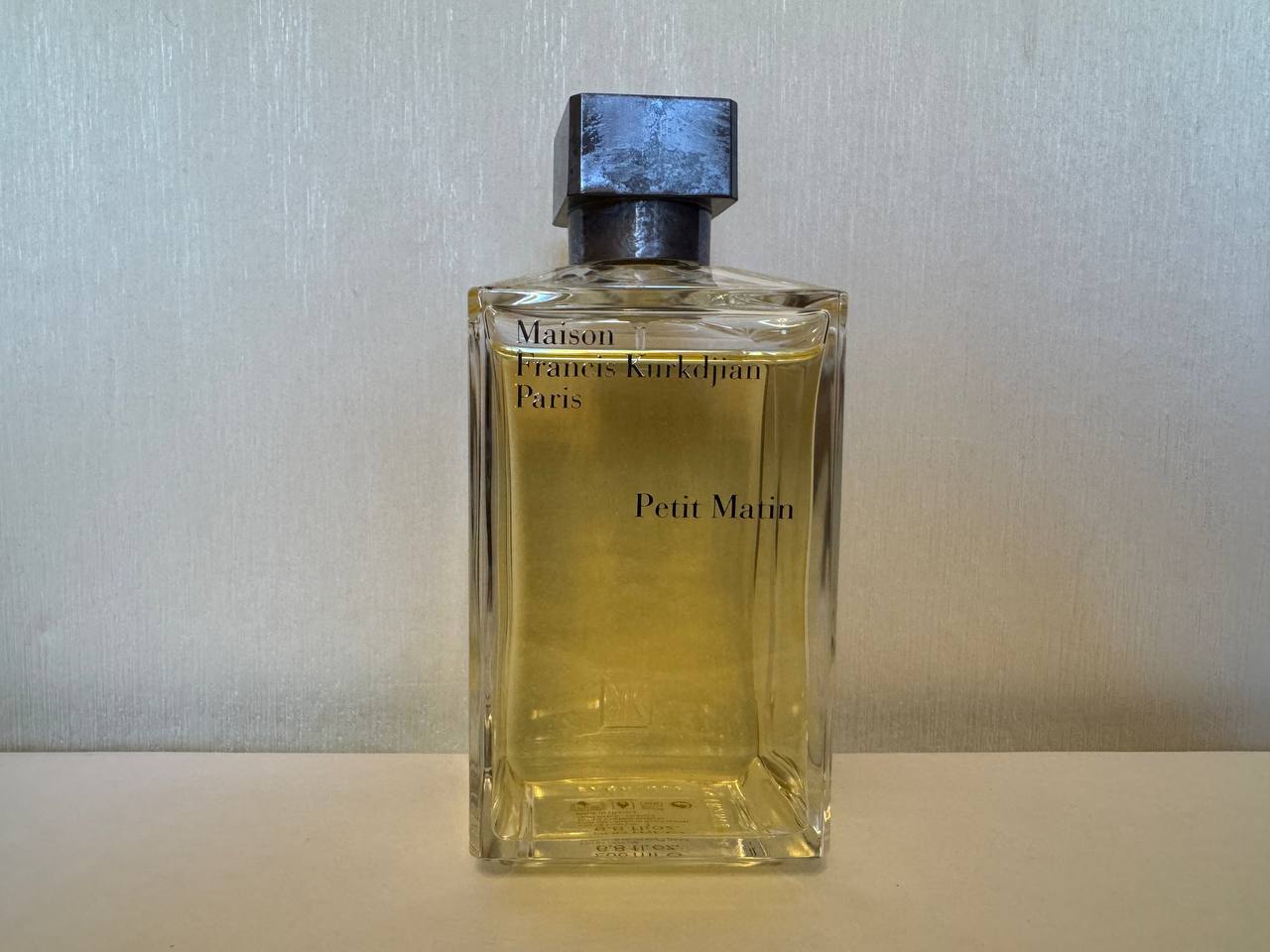 Francis Kurkdjian Petit Matin – это древесно-цветочная композиция с цитрусовыми нотами зовет погрузиться в восхитительную атмосферу раннего парижского утра, насладитесь свежим воздухом и картиной восходящего солнца. Если встать еще до рассвета и прогуляться по пустынным улицам Парижа, то можно ощутить биение пульса большого города и заглянуть в романтические глубины его души. И встретить первые лучи солнца вместе с ароматом Maison Francis Kurkdjian Petit Matin (на фото справа), сохранив захватывающие воспоминания в своем сердце. Сам Фрэнсис говорит о своем аромате, сравнивая его с ольфактивным окном в сердце Города Света, через которое можно просто сбежать. Тишина и камерность предрассветных часов пахнут цитрусовыми оттенками лицеи кубебы и калабрийского лимона, пряными акцентами боярышника, нежными, утонченными тонами лаванды и апельсинового цвета. Легкие, танцующие в воздухе нотки оседают на коже капельками росы в переплетении переливчатых мерцающих оттенков мускуса и амбры.