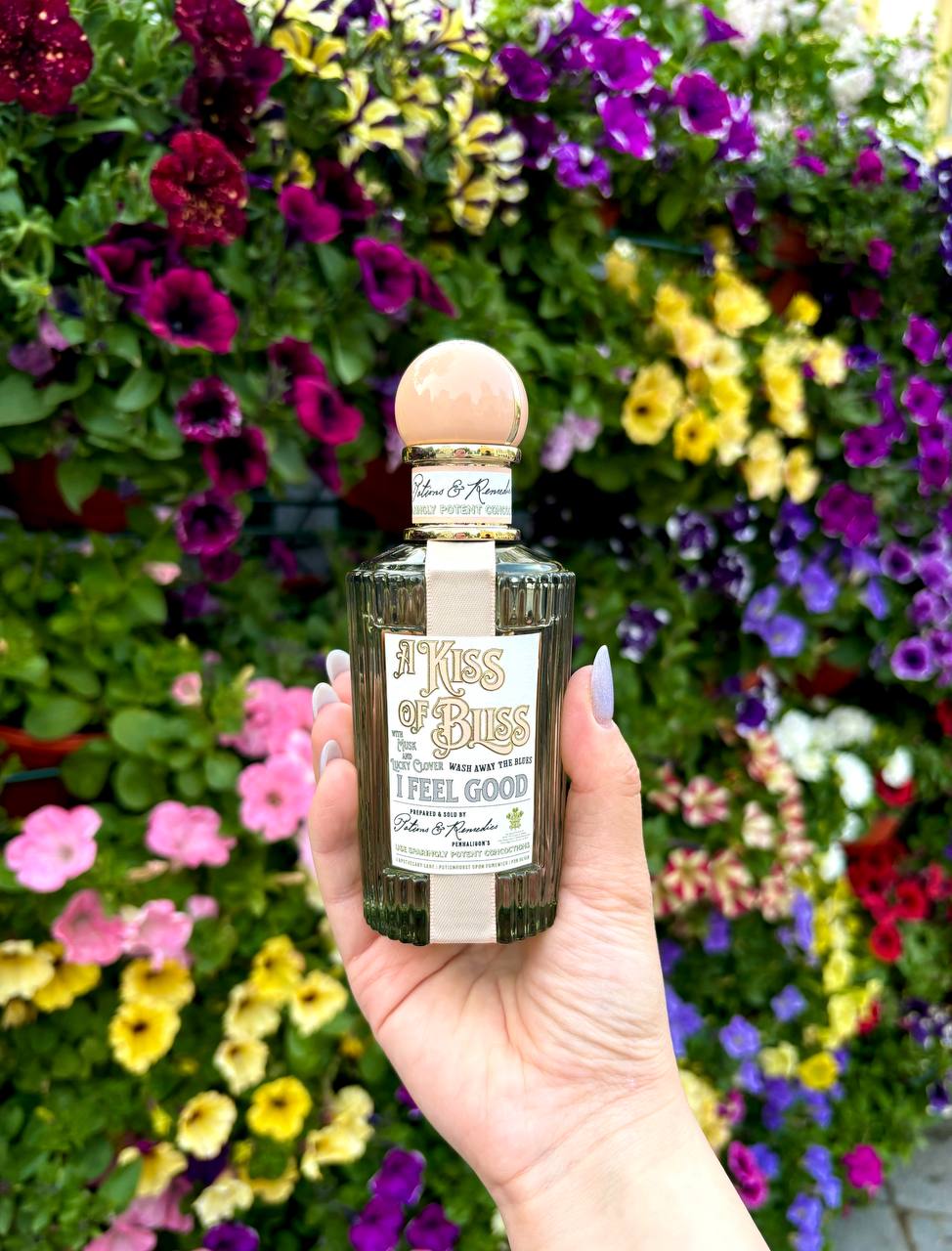 Penhaligon's A Kiss Of Bliss (Поцелуй блаженства) — цветочно-цитрусовый аромат с тонкими оттенками сочной зелени. Парфюмированная вода, рожденная солнечными днями, заставит вас танцевать всю ночь напролет и ощущать блаженство от единения с природой. Композиция начинает звучание с восхитительного ароматического блюза бодрящего бергамота, пряного клевера и аромата медовой розы. Им на смену в сердечном аккорде приходит пьянящий гелиотроп, пряный запах чая мачта и терпковатая свежесть жасмина. Завершает звучание парфюма теплая, чуть землистая пряность листьев пачули, нежный пряно-лесной запах дубового мха и волнующий, упоительный мускус.