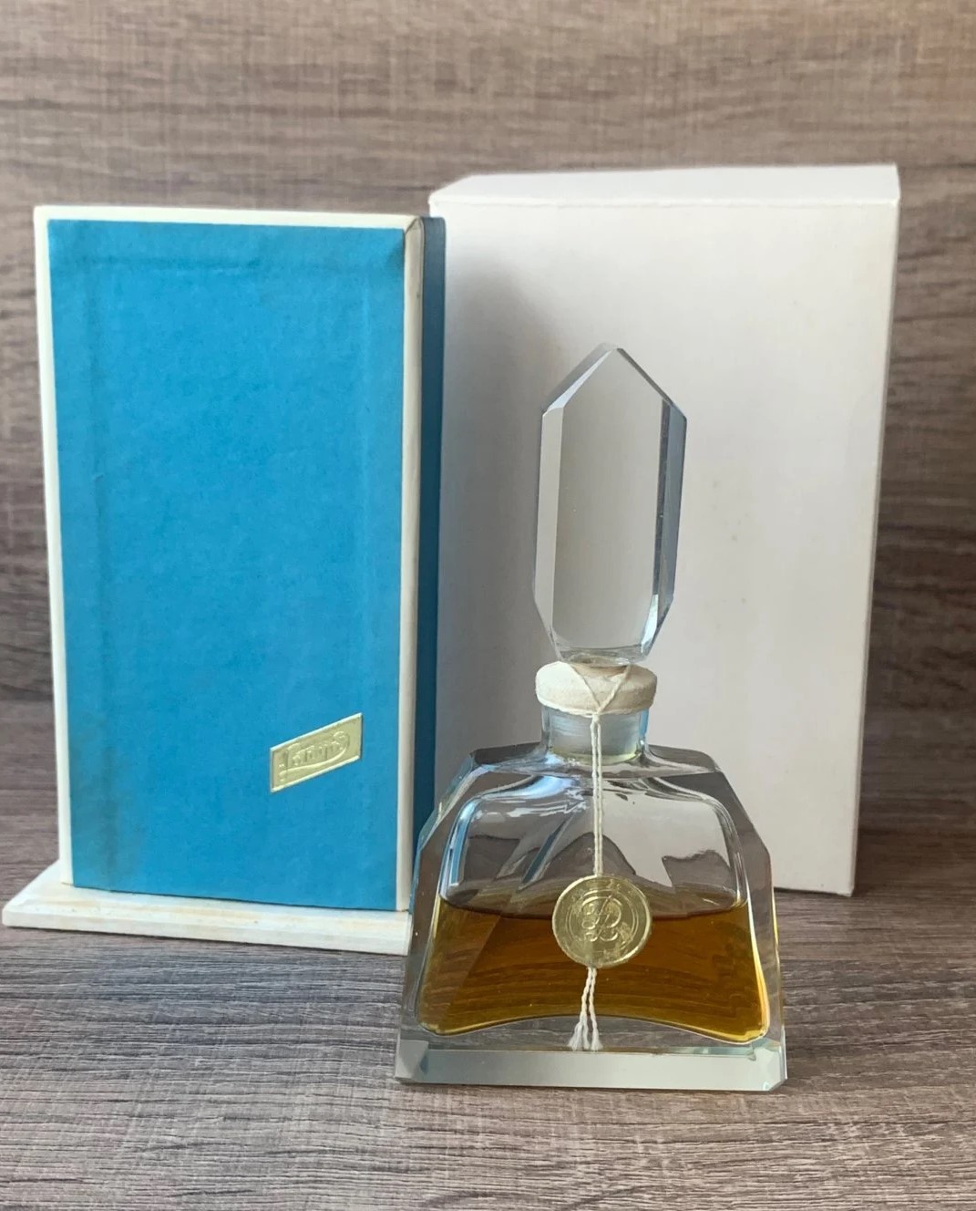 Духи Латвия винтаж ДзинтарсДизайн упаковки: изящный трапециевидный флакон из тяжелого полированного стекла с притертой остроконечной пробкой; элегантная коробка, украшена кистью.