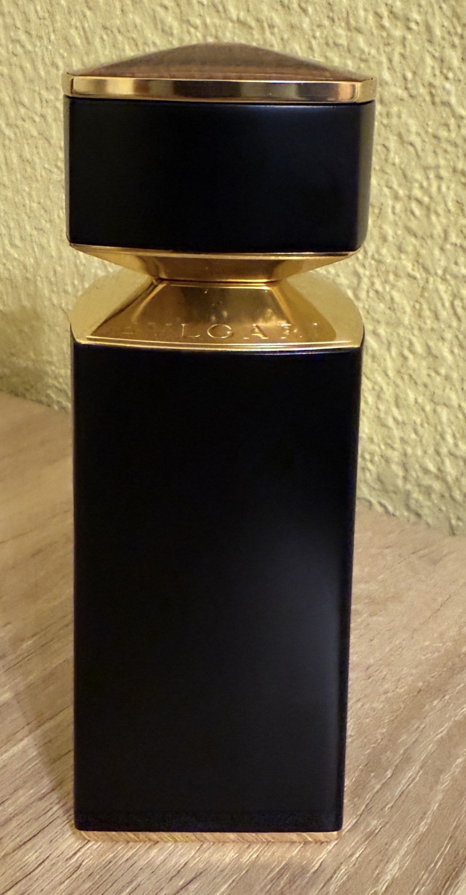 Матовый черный флакон, напоминающий древнеримские обелиски, становится визуальным олицетворением силы и могущества. Венчает дизайн колпачок из золотых драгоценных камней.
