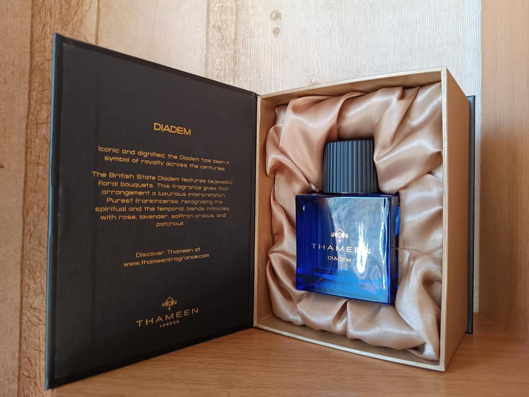 Аромат Thameen Diadem представлен в узнаваемом флаконе бренда, окрашенном в стильный и благородный синий оттенок. Столь роскошное оформление дополнительно подчеркивает очарование и изысканность самой ольфактоной композиции, заключенной внутри.