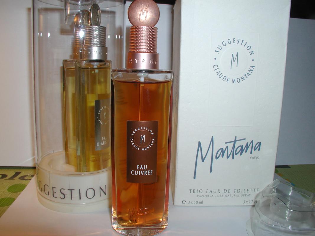 Женский аромат Suggestion Eau Cuivree от французского бренда Montana вышел в 1994 году. Цветочный/фруктовый аромат составила парфюмер Натали Лорсон. Концепцию дизайна флакона разработал дизайнер Тьерри де Башмакофф.