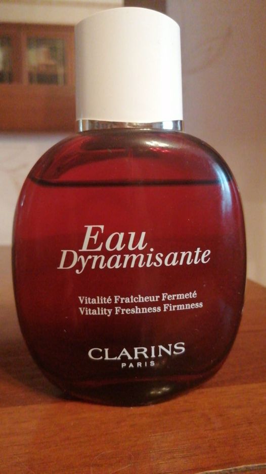 «Eau Dynamisante» Clarins, автором которой значится основатель компании, Жак Куртен-Кларанс, уже без малого тридцать восемь лет. Это, можно сказать, пионер функциональной парфюмерии, запах и уход в одном флаконе, составленный из четырнадцати эфирных масел и терапевтических растительных экстрактов, цель которого — подарить чувство благополучия. (И плюс, по слухам, незаметный и стабильный флагман рынка.) Не знаю, как насчет косметического эффекта, но психологический в моем случае налицо.